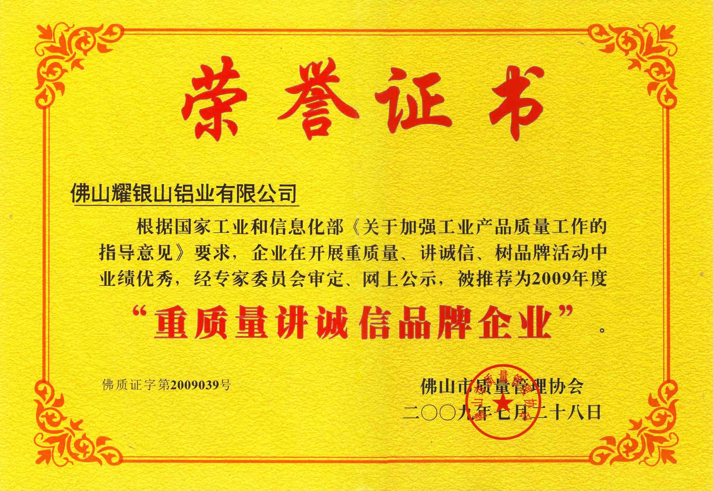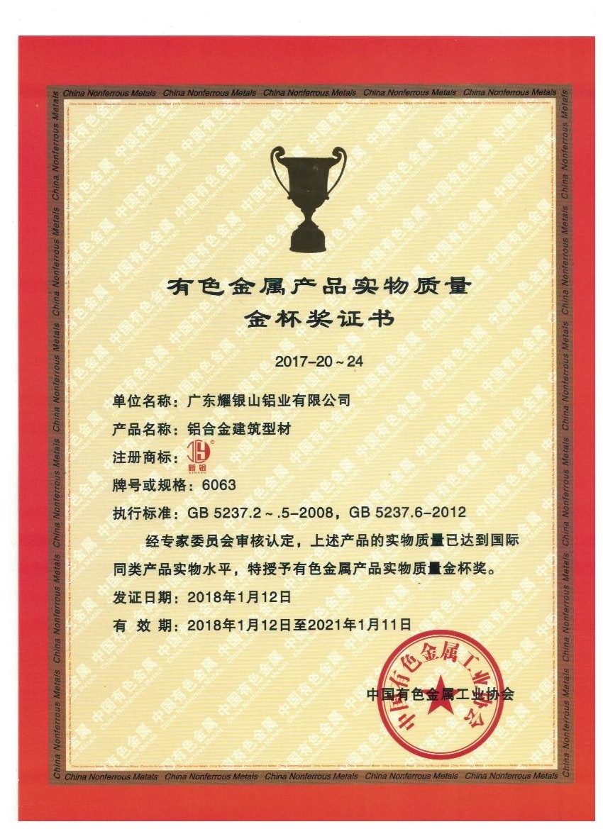 公司創(chuàng)建的“新銀鋁材”品牌自投產(chǎn)以來(lái),以“管理為根、質(zhì)量為本、創(chuàng)新為道、服務(wù)為路”為企業(yè)管理方針,以創(chuàng)建一流的品質(zhì)為目標(biāo),以先進(jìn)的設(shè)備,嚴(yán)格的管理為導(dǎo)向,配備良好的生產(chǎn)環(huán)境、完善的質(zhì)量管理體系。建立起了集熔鑄、擠壓、機(jī)拋、拉絲、氧化、電泳、亮光、噴涂、水性氟碳、木紋、鋁制品精加工等完整的生產(chǎn)系統(tǒng)和設(shè)備先進(jìn)的質(zhì)量檢測(cè)中心。先后通過(guò)和榮獲《ISO9001質(zhì)量管理體系認(rèn)證》、《ISO14001環(huán)境管理體系認(rèn)證》、《ISO45001職業(yè)健康安全管理體系認(rèn)證》、《有色金屬產(chǎn)品實(shí)物質(zhì)量金杯獎(jiǎng)》、《采用國(guó)際標(biāo)準(zhǔn)產(chǎn)品標(biāo)識(shí)證書(shū)》、《全國(guó)質(zhì)量檢驗(yàn)穩(wěn)定合格產(chǎn)品》、《廣東省名牌產(chǎn)品》、《佛山市清潔生產(chǎn)企業(yè)》、《綠色建材產(chǎn)品認(rèn)證》、《節(jié)能產(chǎn)品認(rèn)證》、《家裝鋁材十強(qiáng)企業(yè)》、《企業(yè)標(biāo)準(zhǔn)領(lǐng)跑者》等榮譽(yù)。